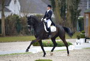 Schon im letzten Jahr richtete der Aachener Dressurverein auf dem CHIO-Gelände ein Late-Entry-Turnier aus, das bei den Reitern großen Anklang fand. Dass die Wiederholung bei frostigem Winterwetter stattfinden würde, konnte natürlich niemand ahnen -- das war allerdings das einzige Manko dieser wirklich liebevoll gemachten Veranstaltung von Reitern für Reiter. Unter Top-Bedingungen konnte ich hier mit Dark Dynamic zum ersten Mal nach Münster weitere Turniererfahrung sammeln, und er hat mir große Freude gemacht. Mit 72,72% gewann er in der Albert-Vahle-Halle nach einer schönen Runde die Inter-II der Tour für Nachwuchspferde. In den Grand Prix derselben Tour, den er mit knapp unter 70% ebenfalls gewann, schlichen sich zwar noch ein paar Unkonzentriertheiten, aber das war natürlich auch unser erster Start unter freiem Himmel. Darauf können wir jetzt prima aufbauen -- was mir auch das positive Feedback beweist, das ich von vielen Seiten auf beide Ritte bekommen habe. Ich freue mich schon auf den nächsten Start -- und bedanke mich noch einmal bei den Machern des Aachener Dressurvereins für das Engagement!